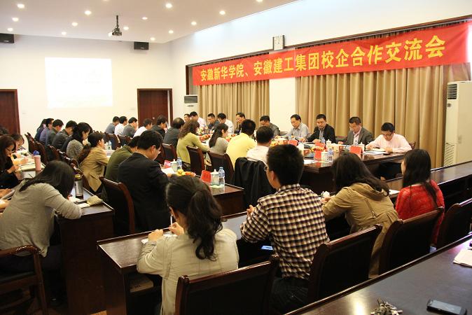 王禮義副總詳細(xì)介紹了集團(tuán)公司發(fā)展歷程與現(xiàn)狀。他表示,安徽建工集團(tuán)作為安徽新華學(xué)院一期工程的建設(shè)單位之一,與學(xué)校有著深厚的淵源。此次座談交流是希望與新華學(xué)院一起搭建合作平臺(tái),建立相互溝通交流機(jī)制,實(shí)現(xiàn)資源共享、優(yōu)勢(shì)互補(bǔ)。