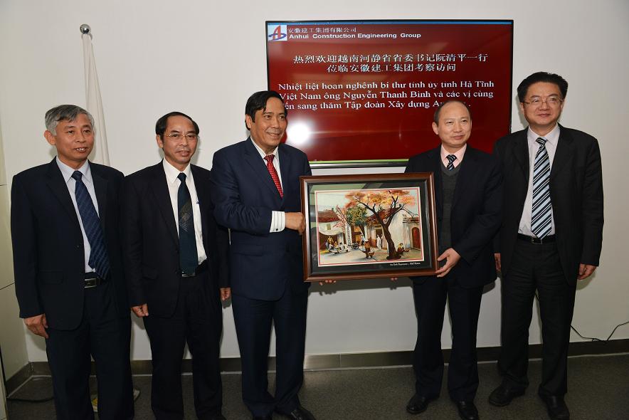 應(yīng)集團(tuán)公司董事長(zhǎng)、黨委書(shū)記趙時(shí)運(yùn)邀請(qǐng),3月17日—18日,越南河靜省省委書(shū)記阮清平一行14人蒞臨安徽建工集團(tuán)考察訪問(wèn)。集團(tuán)公司總經(jīng)理劉家靜、副總經(jīng)理許克順、紀(jì)委書(shū)記、工會(huì)主席牛曙東等陪同考察。