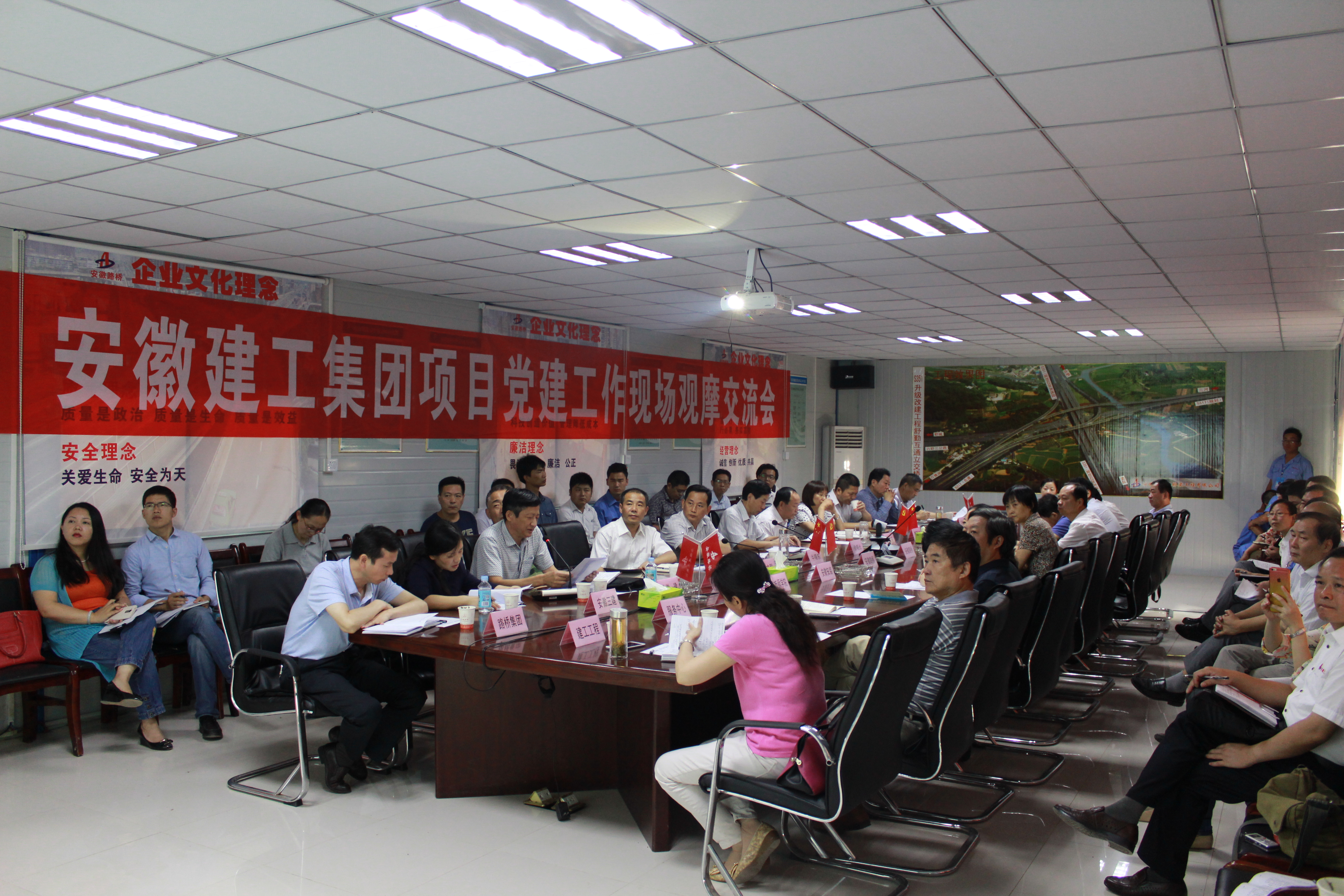 與會人員觀摩了S351升級改建工程項目創(chuàng)建“黨員先鋒號工程”的施工現(xiàn)場及項目部和生活區(qū)各種企業(yè)文化特色設(shè)施,大家一致認為創(chuàng)建活動主題鮮明,成效顯著。交流會上,安徽一建、安徽二建、安徽三建、路橋集團、安徽路橋、安徽路港等6個單位作交流發(fā)言,介紹項目黨建工作開展情況以及創(chuàng)建黨員先鋒號工作的經(jīng)驗做法。與會人員結(jié)合各單位實際,圍繞加強項目黨建工作進行了座談交流。