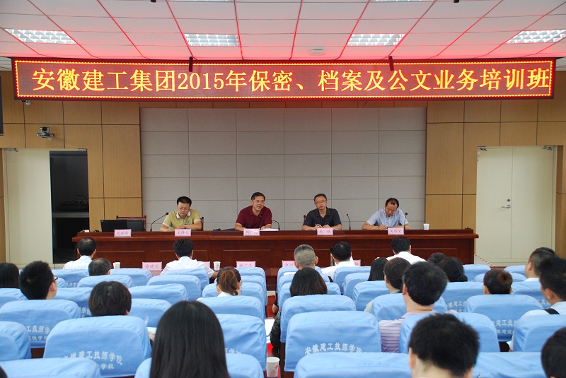 9月29日,安徽建工集團(tuán)2015年保密、檔案及公文業(yè)務(wù)培訓(xùn)班在安徽建工技師學(xué)院順利舉辦,集團(tuán)公司領(lǐng)導(dǎo)趙時(shí)運(yùn)、劉家靜、楊廣亮、許克順、霍向東、徐曉光出席了此次培訓(xùn)。副總經(jīng)理?xiàng)顝V亮作開班講話,省保密局副局長吳斌、省委辦公廳文電處鄭少龍、省檔案局標(biāo)準(zhǔn)化建設(shè)處汪海峰受邀分別就具體業(yè)務(wù)授課,來自集團(tuán)公司機(jī)關(guān)部門和各子分公司的相關(guān)業(yè)務(wù)人員共計(jì)120余人參加了此次培訓(xùn)。