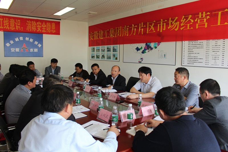 2015年11月2日上午,安徽建工集團(tuán)在安徽水利股份南方公司(廣州)會(huì)議室召開了南方片區(qū)市場(chǎng)經(jīng)營(yíng)會(huì)議。集團(tuán)公司董事長(zhǎng)、黨委書記趙時(shí)運(yùn)出席會(huì)議并講話,集團(tuán)公司副總經(jīng)理、黨委委員許克順、總經(jīng)理助理汪衛(wèi)東、經(jīng)營(yíng)部主任陳修翔、辦公室副主任余志剛,以及安徽水利、安徽三建、路橋集團(tuán)、安徽路橋、安徽路港、安徽安裝、安徽交航、安建建設(shè)、安建海外等單位南方片區(qū)負(fù)責(zé)同志或分管領(lǐng)導(dǎo)參加了會(huì)議。