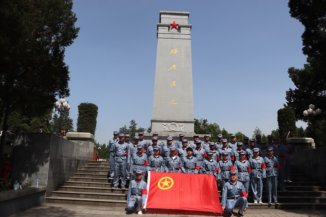 在統(tǒng)一換上紅軍服裝后,青年團員們首先來到金寨紅軍文化廣場。在革命烈士紀念塔下,面對鮮艷的中國共產主義青年團團旗,公司團委書記帶領到場青年團員重溫入團誓詞,牢記初心使命,緬懷革命先烈,傳承五四精神,并對榮獲公司2020年度“五四紅旗團支部”與“優(yōu)秀團員”的集體與個人進行了表彰。