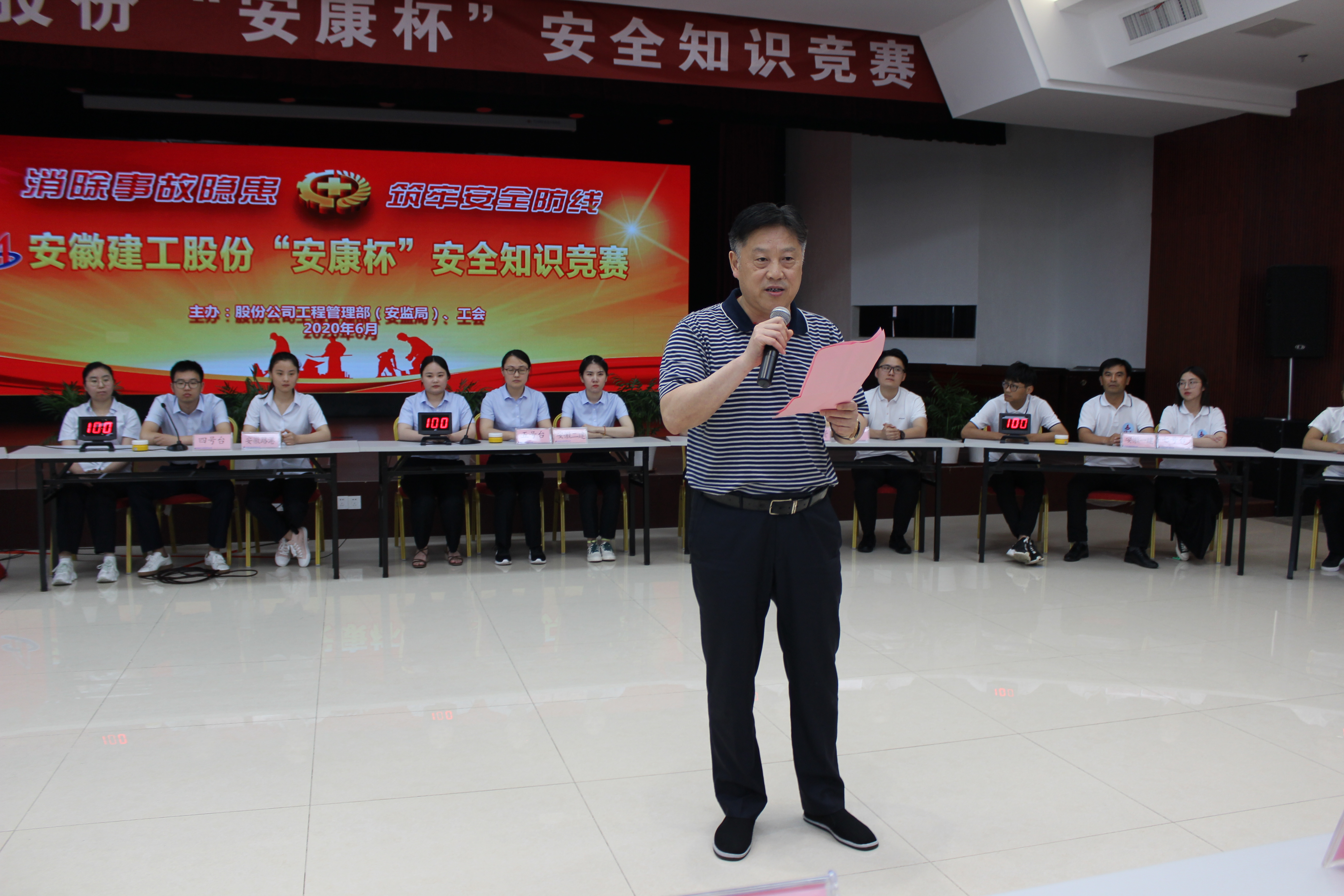 6月12日,安徽建工股份2020年“安康杯”安全知識競賽在安建國際大廈三樓報告廳舉行。控股黨委委員、股份黨委副書記、安委會主任、總經(jīng)理許克順出席活動并致開幕詞,省建設(shè)建材工會主任程德旺蒞臨活動現(xiàn)場。股份公司安監(jiān)局、工會全員,所屬各單位分管安全領(lǐng)導(dǎo)、工會、安全部門負(fù)責(zé)人等參加了本次活動。