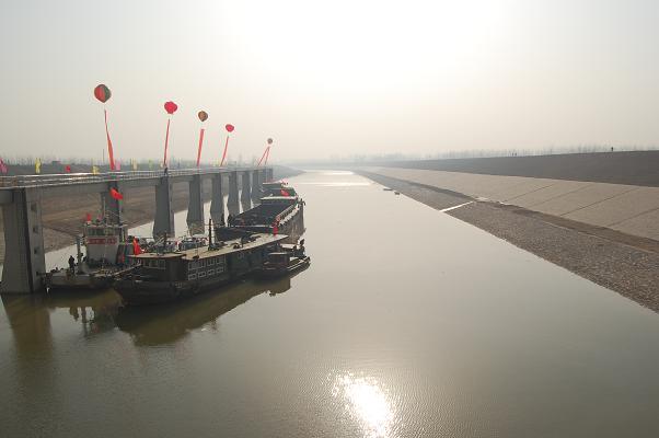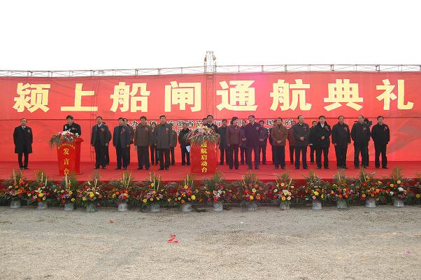潁上船閘通航典禮由省交通廳副廳長羅寧主持。省長助理花建慧代表省政府向潁上船閘建成通航表示祝賀,她指出:潁上船閘建設是我省沙潁河復航的第一個工程,是全省“861計劃”重要項目,建設潁上船閘,開辟阜陽航運的第二條入淮通道,是沙潁河航運全線復航的迫切需要,對加快淮河航道網(wǎng)建設、完善區(qū)域綜合運輸體系、改善流域水環(huán)境、推進國家高等級航道網(wǎng)建設、促進豫皖合作,特別是皖北地區(qū)發(fā)展都是具有十分重要意義。省港航建設投資集團公司總經(jīng)理李家俊隨后詳細介紹了潁上船閘建設情況,他說:潁上船閘的勝利通航是在省委省政府的悉心關懷下、阜陽市委市政府和阜陽人民的大力支持下,經(jīng)過所有參建單位的近三年辛勤工作,今日終于勝利通航。潁上船閘建成通航既實現(xiàn)了沿淮群眾多年的夙愿,也為全面回復沙潁河航運開了一個好頭,作為安徽省“兩干三支”水運主航道之一的沙潁河全線復航已是指日可待,將對地方經(jīng)濟的發(fā)展起到有力的促進作用。最后,副省長黃海嵩為穎上船閘通航啟動通航按鈕!
