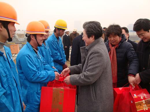 20日上午,安徽省委常委、省總工會(huì)主席王秀芳代表省總工會(huì)來到三建公司承建的安徽省總工會(huì)職工活動(dòng)中心綜合樓工地,對項(xiàng)目人員進(jìn)行慰問,了解農(nóng)民工的收入情況,向農(nóng)民工兄弟致以新春的問候并送上了賀歲大禮包。