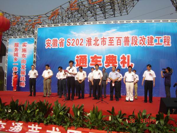 省交通廳廳長(zhǎng)梅勁,省公路局局長(zhǎng)秦勤,淮北市政府領(lǐng)導(dǎo)以及該公司副總經(jīng)理王可武參加了通車典禮儀式。